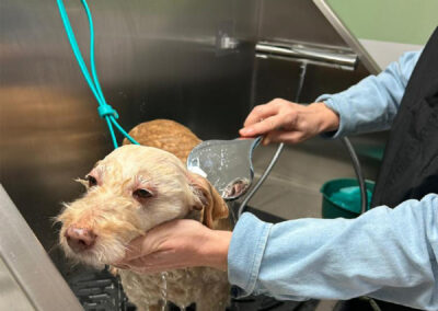Im Hundesalon erhält Ihr Vierbeiner ein professionelles Bad mit hochwertigen, hautfreundlichen Pflegeprodukten. Beim Baden werden Schmutz, lose Haare und Gerüche gründlich entfernt. Die schonende Fell- und Hautpflege für Hunde sorgt für ein sauberes, glänzendes Fell und trägt zum Wohlbefinden Ihres Hundes bei.